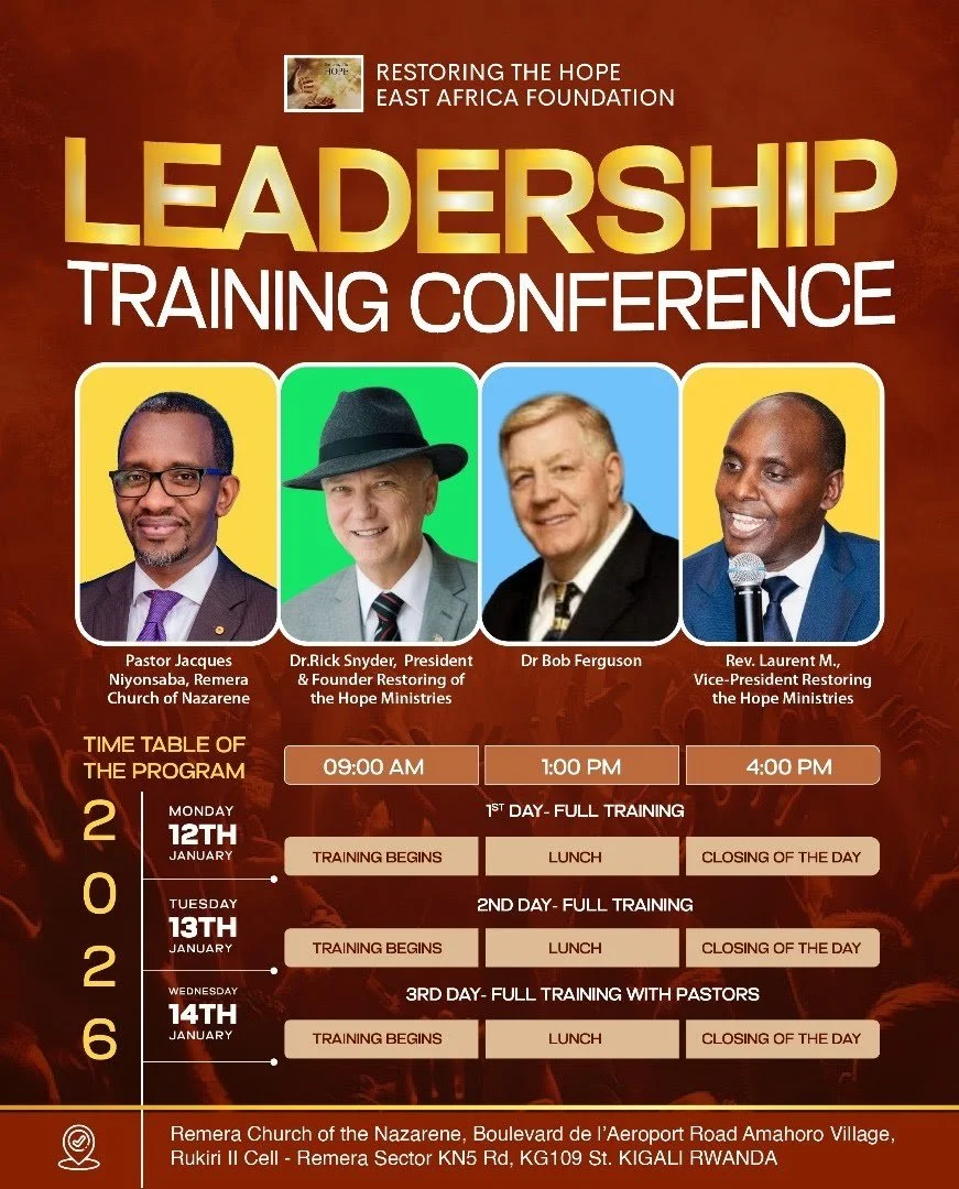 The East African initiative includes research for the potential development of an Orphanage, a Center for Single Mothers, and a Vocational Training Center. To ensure success, we will provide the leaders from five African countries with training through the Global School of the Scriptures and the development of a Scripture Distribution Center. The training, to be conducted in Rwanda*, will empower hundreds of leaders to effectively engage with their communities and add to the success of the ministries.
